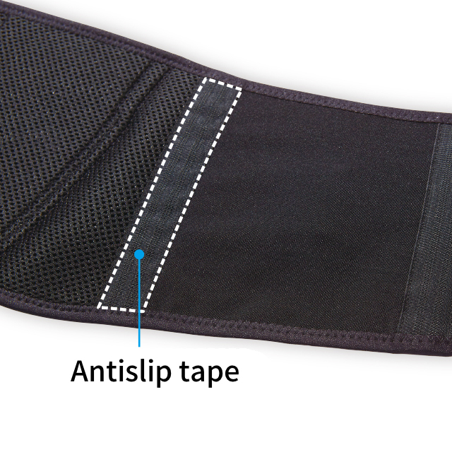 Four pieces of the anti-slip tapes are used inside the main body to prevent the belt from slipping with strenuous movement.